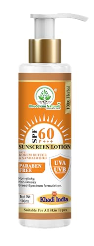 Khadi Sunscreen SPF 60 Lotion with Kokum Butter & Sandalwood for Men & Women By Bhudevam Naturals | Broad Spectrum UVA & UVB Protection | Lightweight, Non-Sticky & Hydrating Formula For All Skin Types – 100ML is available on Amazon at best discounted online price. Original price of this product is ₹ 449. You can buy this product at discounted rate ₹ 269.